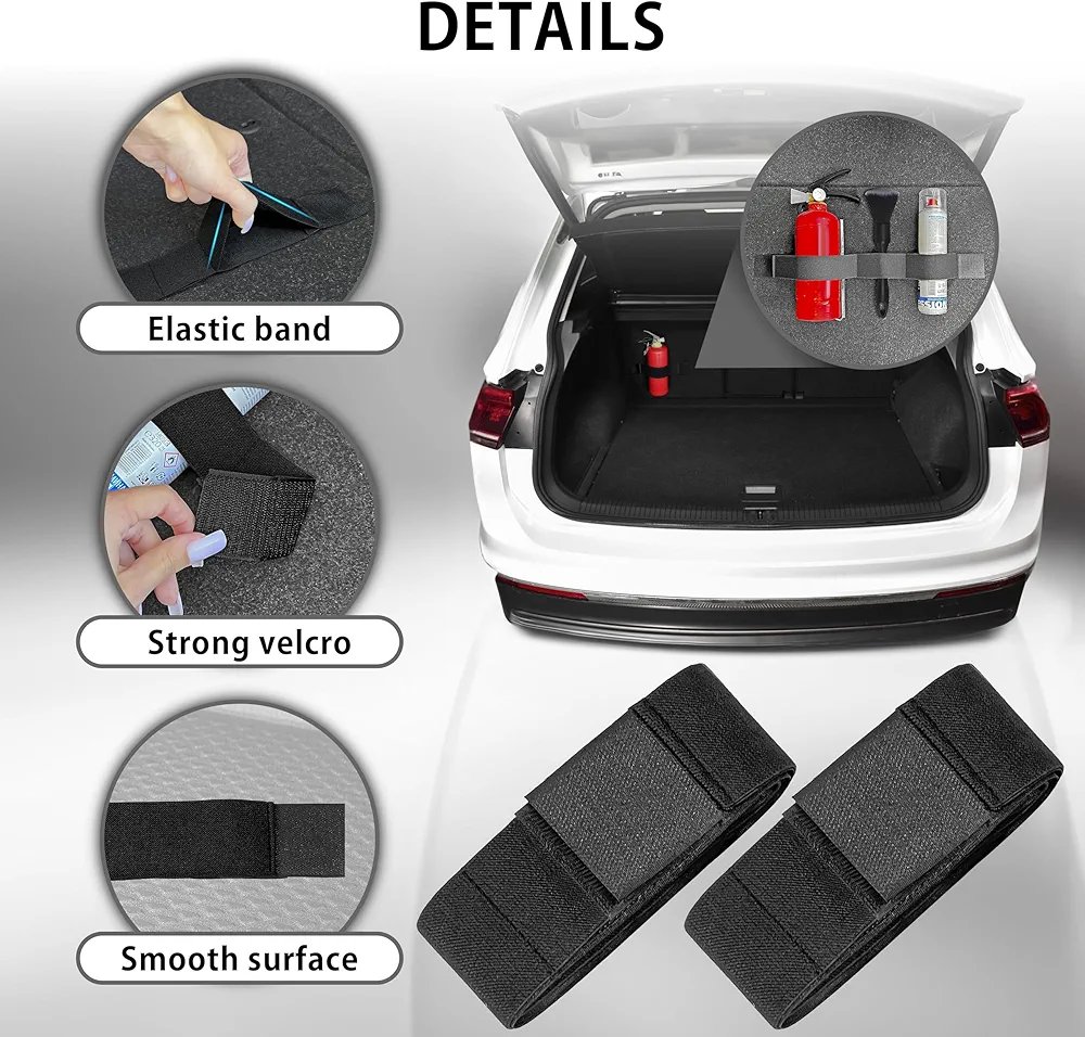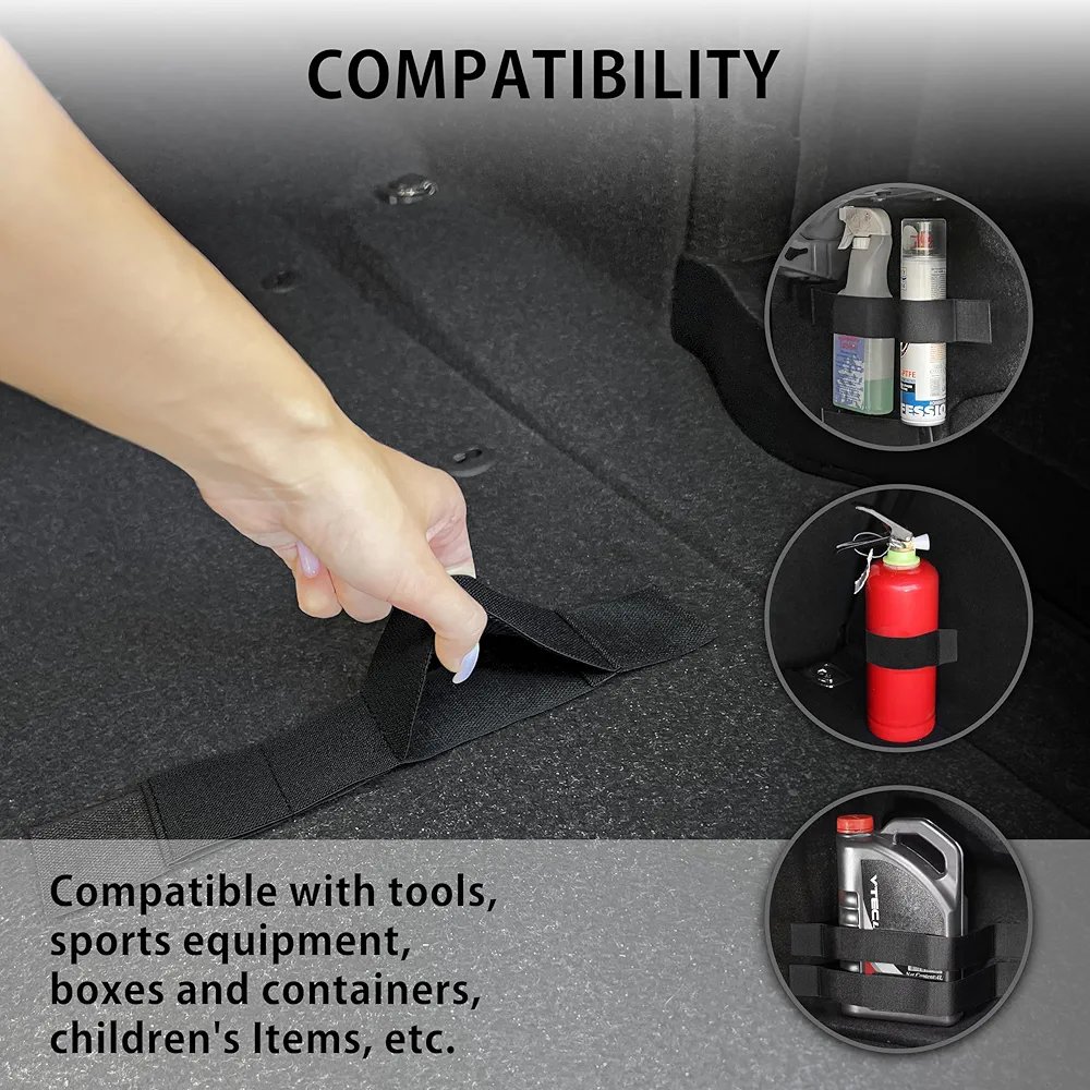 Ces bandes s’attachent aux parois du coffre ou sous les sièges pour éviter que les objets ne bougent pendant la conduite.