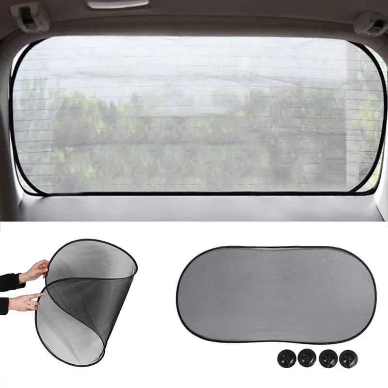 Pare-soleil pour la lunette arrière du véhicule, double face Noir. Ce pare-soleil est repliable et s’accroche sur la vitre lunette arrière du véhicule à l’aide de ventouses. Dimensions : 50 x 100 cm. Norme EN71.